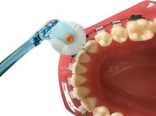 で矯正装置を包み込んで清掃できます。