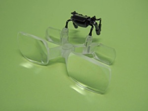 眼鏡やゴーグルにクリップで挟みこむタイプの拡大鏡です。